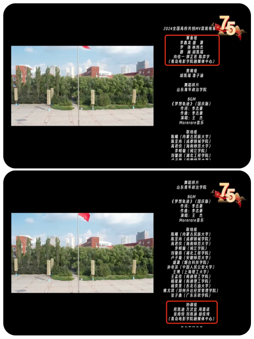 本次活动,来自15个省份的140余所高校积极参与,其中75所高校的学生团队精心创作了MV混剪作品,充分展示了青年学子的创新精神和团队协作能力。青岛电影学院不仅作为活动的发起方,还深度参与了活动的筹备与执行过程,学校提供了专业的技术支持,同时在内容创意、活动策划等方面发挥了重要作用,从策划到落地,每一步都凝聚了来自青影师生的智慧与心血。
