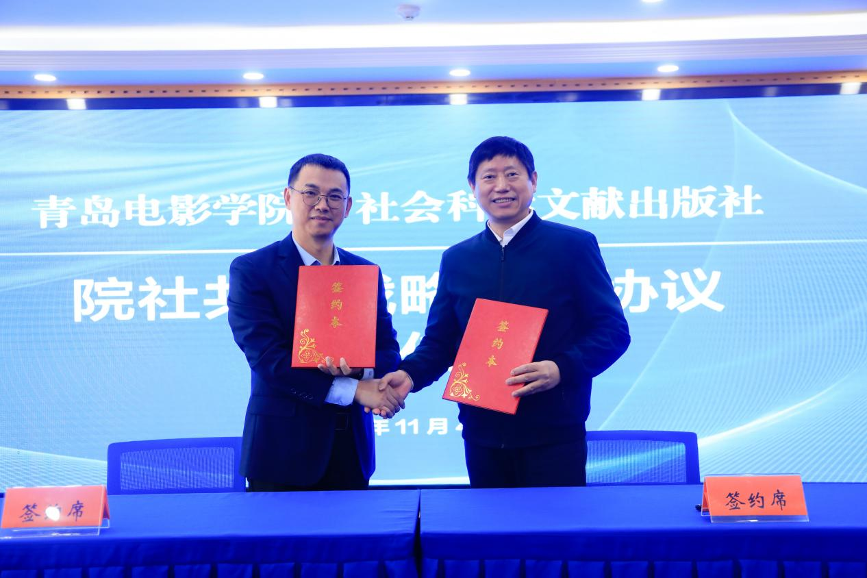 金梦玉表示,青岛电影学院依托联合国教科文组织认定的青岛电影之都,不仅拥有得天独厚的区位优势、政策优势,还汇聚了丰富的资源优势、品牌优势、传承优势和硬件优势,致力于培养具有国际视野和创新能力的影视创新人才,推动中国电影产业的繁荣发展。自2018年以来共出版了7部电影蓝皮书《全球电影产业发展报告》,并通过社会科学文献出版社授权,在国际知名学术出版集团泰勒·弗朗西斯旗下劳特里奇出版社出版2部英文版图书,在国内外学术界和产业界产生了深远影响。校社共建合作框架协议的签订,标志着双方合作迈上新台阶,双方共同搭建学术资源共享平台,推进学术研究与出版的共同发展。