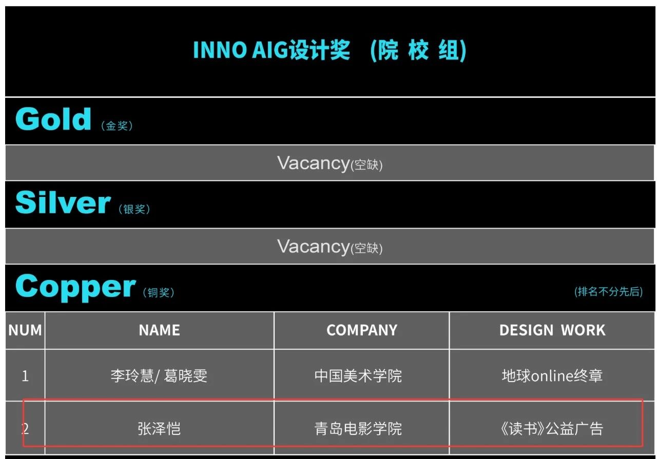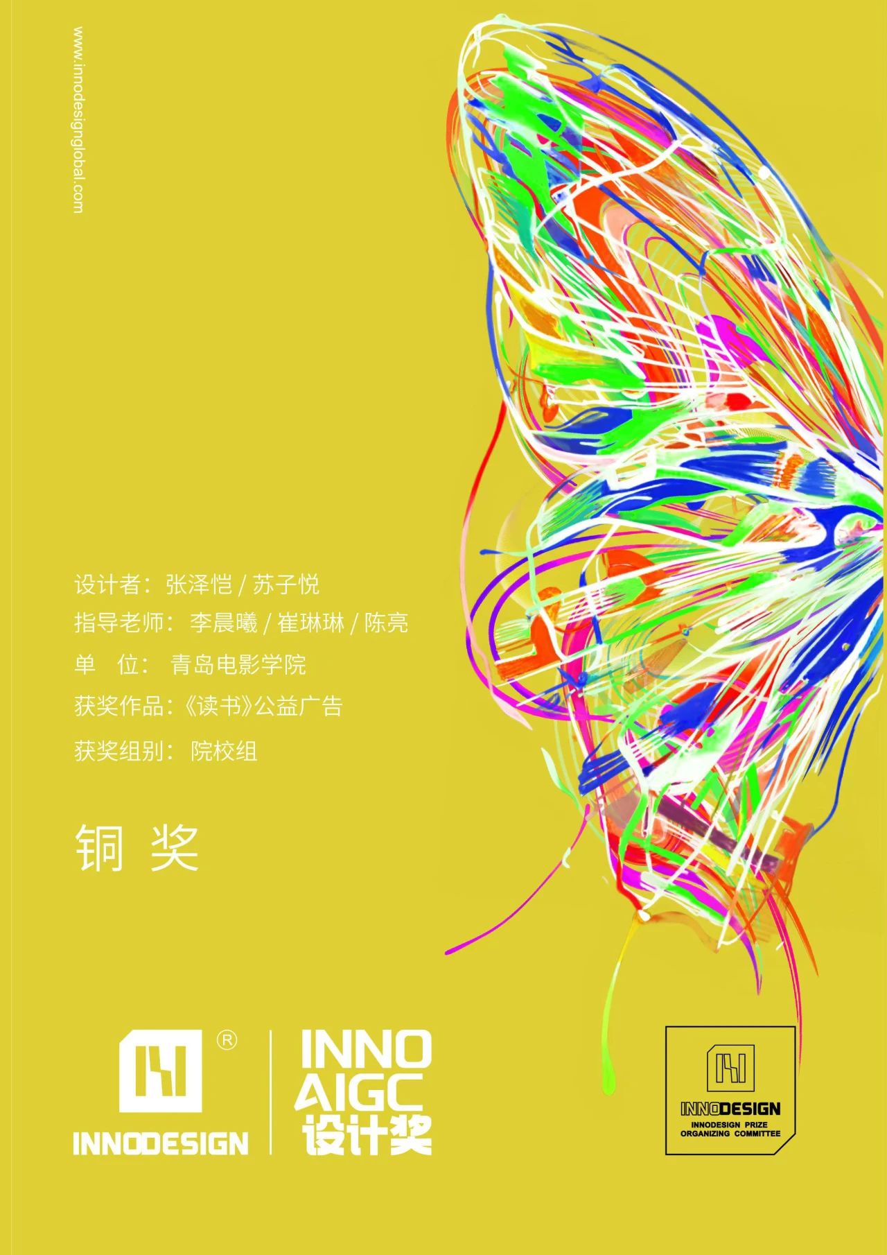 近日,在由法国梅斯市政厅主办,法国创新设计专业委员会的监管,美国红杉传媒集团、中东(迪拜)专业设计师协会、迪拜设计周组委会等组织机构协作下,INNODESIGN PRIZE国际设计大赛中,我校文学与导演学院学生张泽恺、苏子悦凭借AIGC公益广告作品《读书》荣获铜奖和主题性作品奖(因保证大赛的专业度,设置了严格的评分机制,金银奖未达分数空缺,铜奖为亚太地区最高奖项),该作品由文学与导演学院院长李晨曦、教师崔琳琳,以及影视创制艺术中心主任陈亮共同指导。