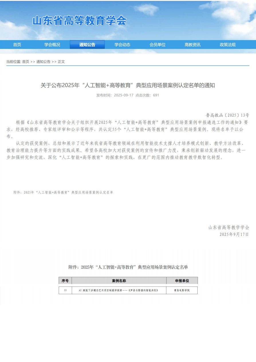 学校案例入选2025年山东省高等教育学会“人工智能+高等教育”典型应用场景案例