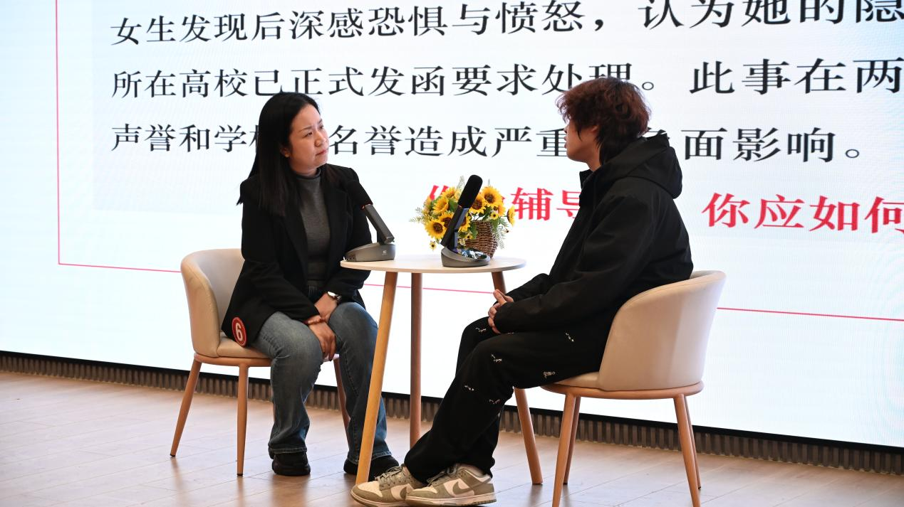 “谈心谈话”环节模拟真实工作情境,围绕思想引领、心理疏导、危机应对、贫困帮扶、就业指导、日常事务管理等常见议题,参赛辅导员与助演学生开展限时交流。面对多样情境,辅导员展现出良好的共情能力、思想引导力与实际问题处置能力,体现了扎实的工作积累。