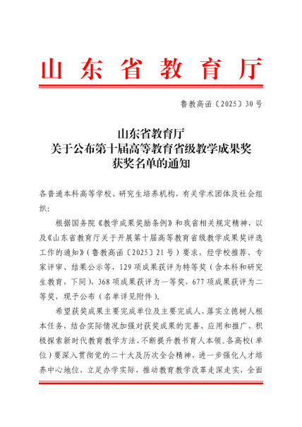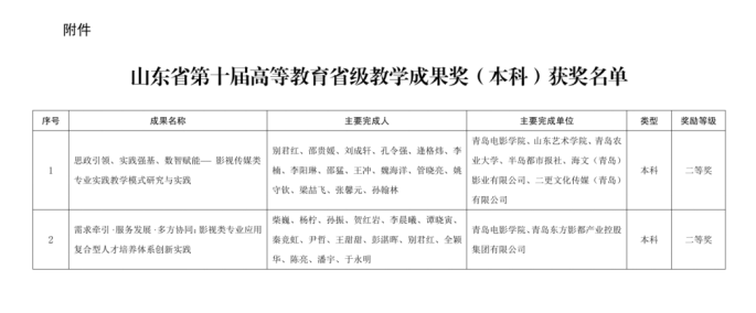 近日,山东省第十届高等教育教学成果奖评选结果正式公布,学校申报的《思政引领、实践强基、数智赋能 —— 影视传媒类专业实践教学模式研究与实践》《需求牵引・服务发展・多方协同:影视类专业应用复合型人才培养体系创新实践》两项成果均荣获本科教学成果二等奖标志着学校在影视人才培养与实践教学改革方面取得突破性进展。