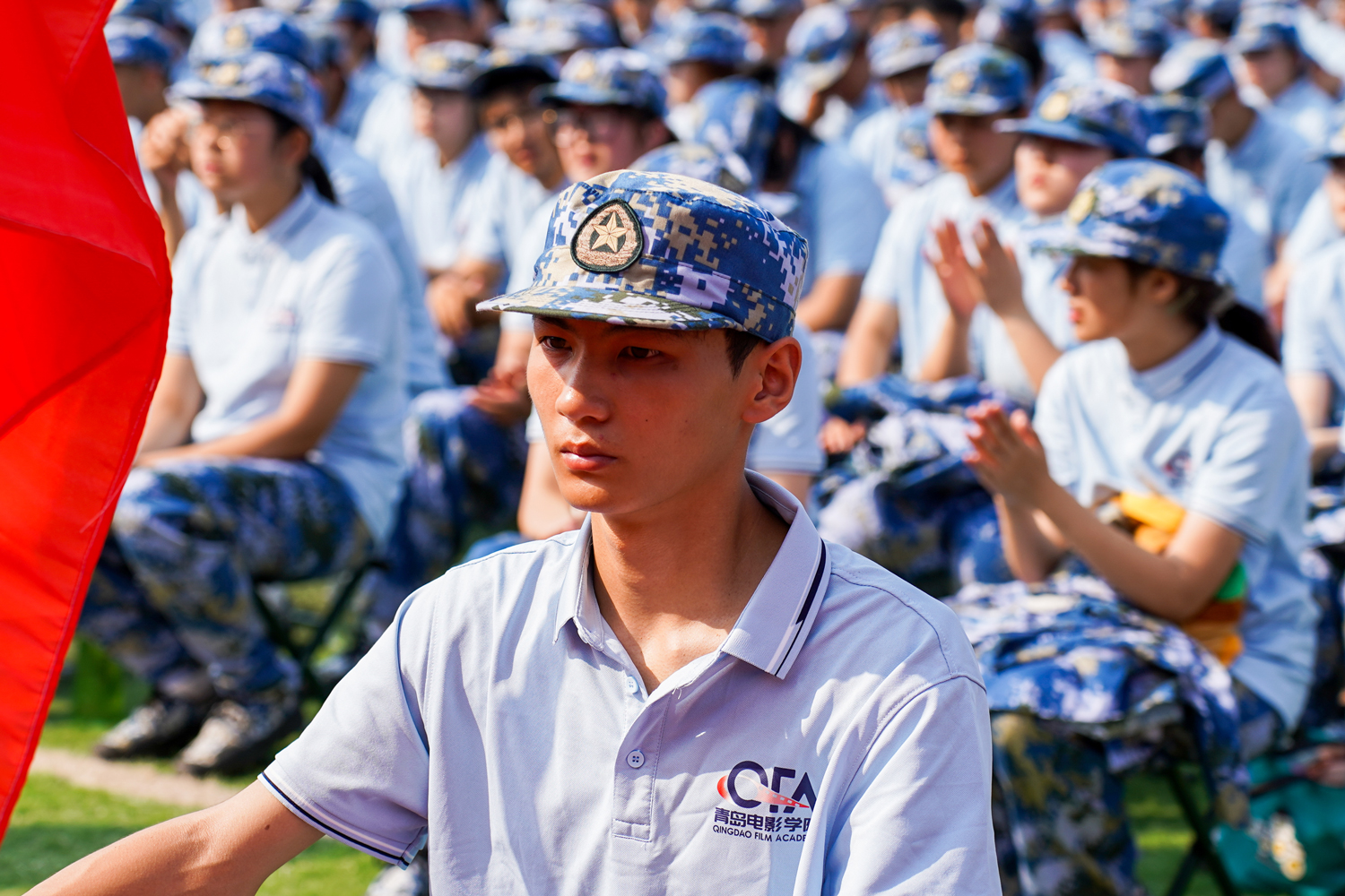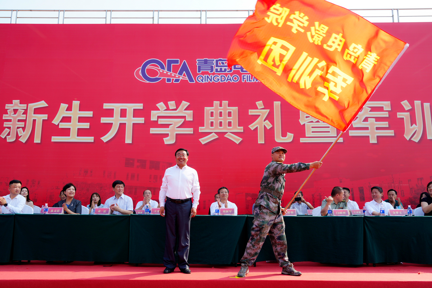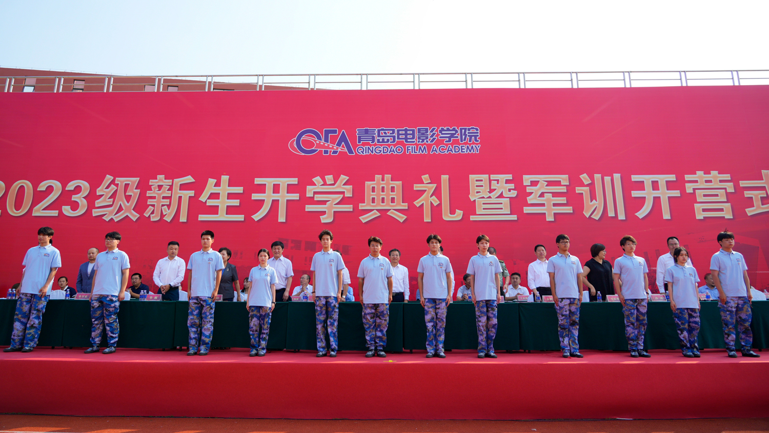 万顷鲸涛山外去,数行秋色雁边来。9月17日上午,学校2023级新生开学典礼暨军训开营式在学校操场隆重举行。北京电影学院党委常委、纪委书记刘新军,北京电影学院教务处处长、声音学院院长童雷,黄岛区区委常委、区人武部政委闫明智,著名导演朱昱东,青岛电影学院校长王宏民、党委书记孔祥华、常务副校长苏文洁、副校长金梦玉、副校长柴巍、副校长李英华、党委委员、纪委委员孙剑出席典礼。各系各部门负责人、教师代表和全体2023级新生参加开学典礼暨军训开营式。典礼由学校副校长于永明主持。