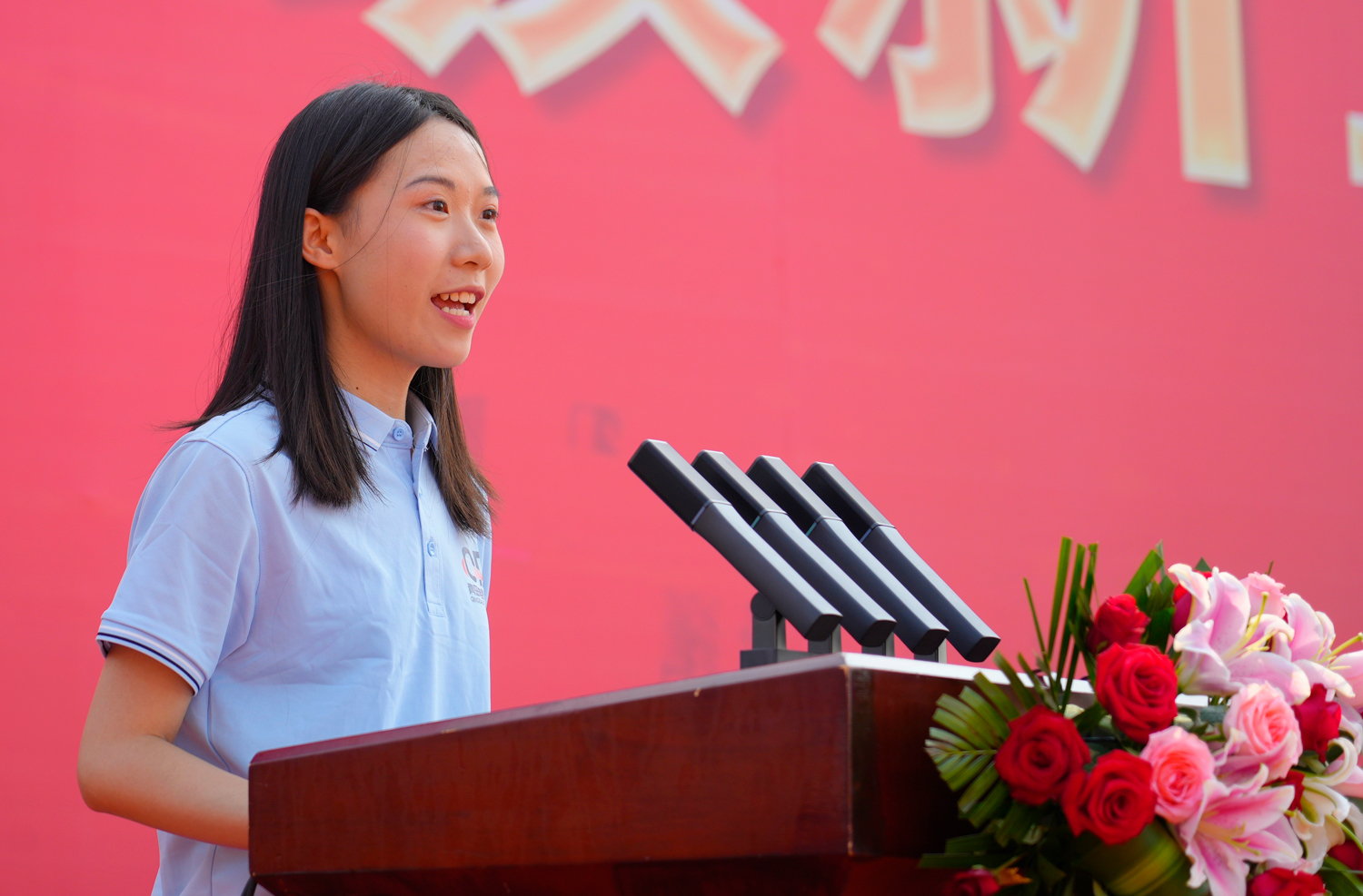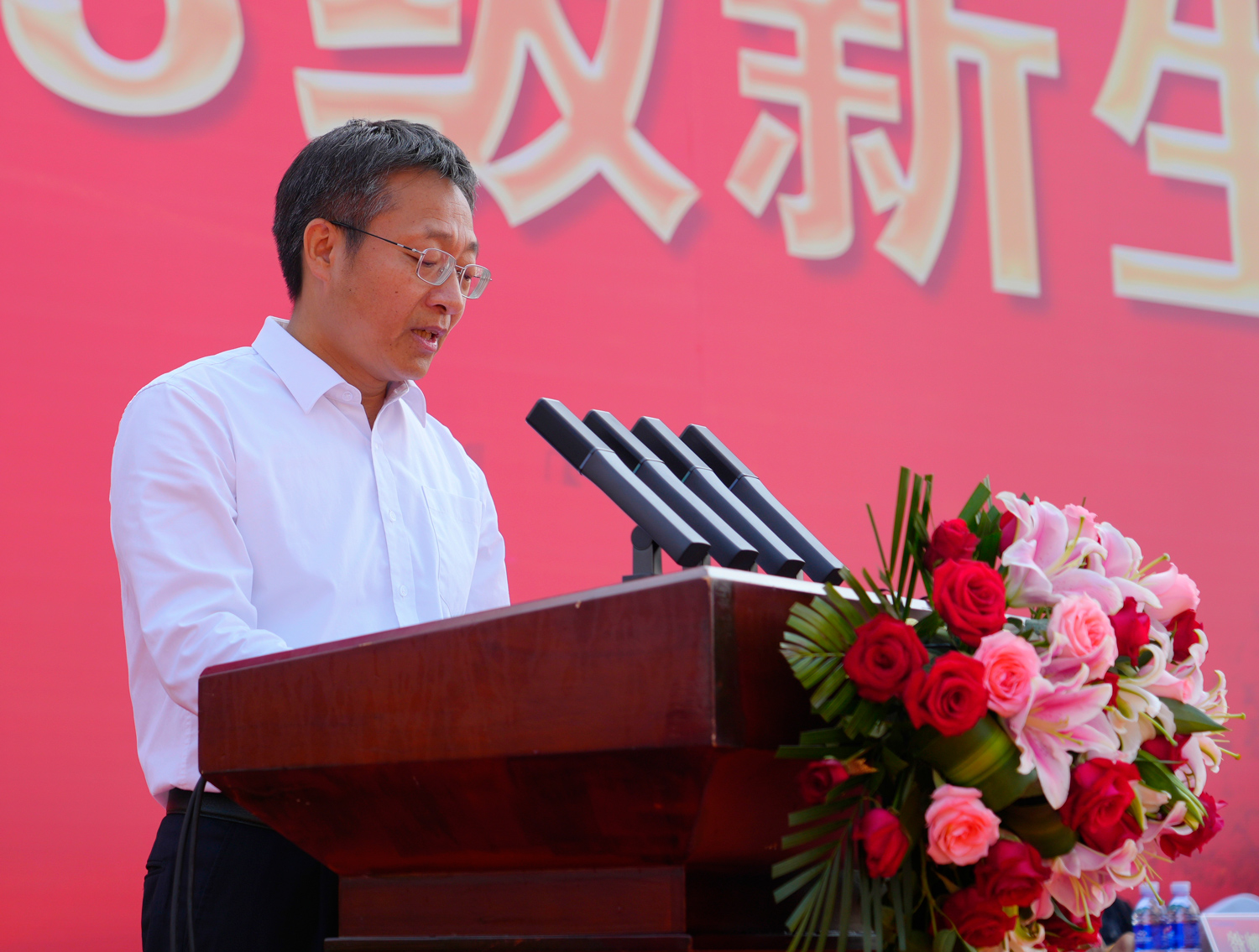 文学系段静轩同学作为新生代表发言,她以一名当代青年大学生身份,呼吁同学们要勤学善思,砥砺品格,博学笃志,发奋图强。以实际行动刻苦学习,为中华民族伟大复兴贡献力量。