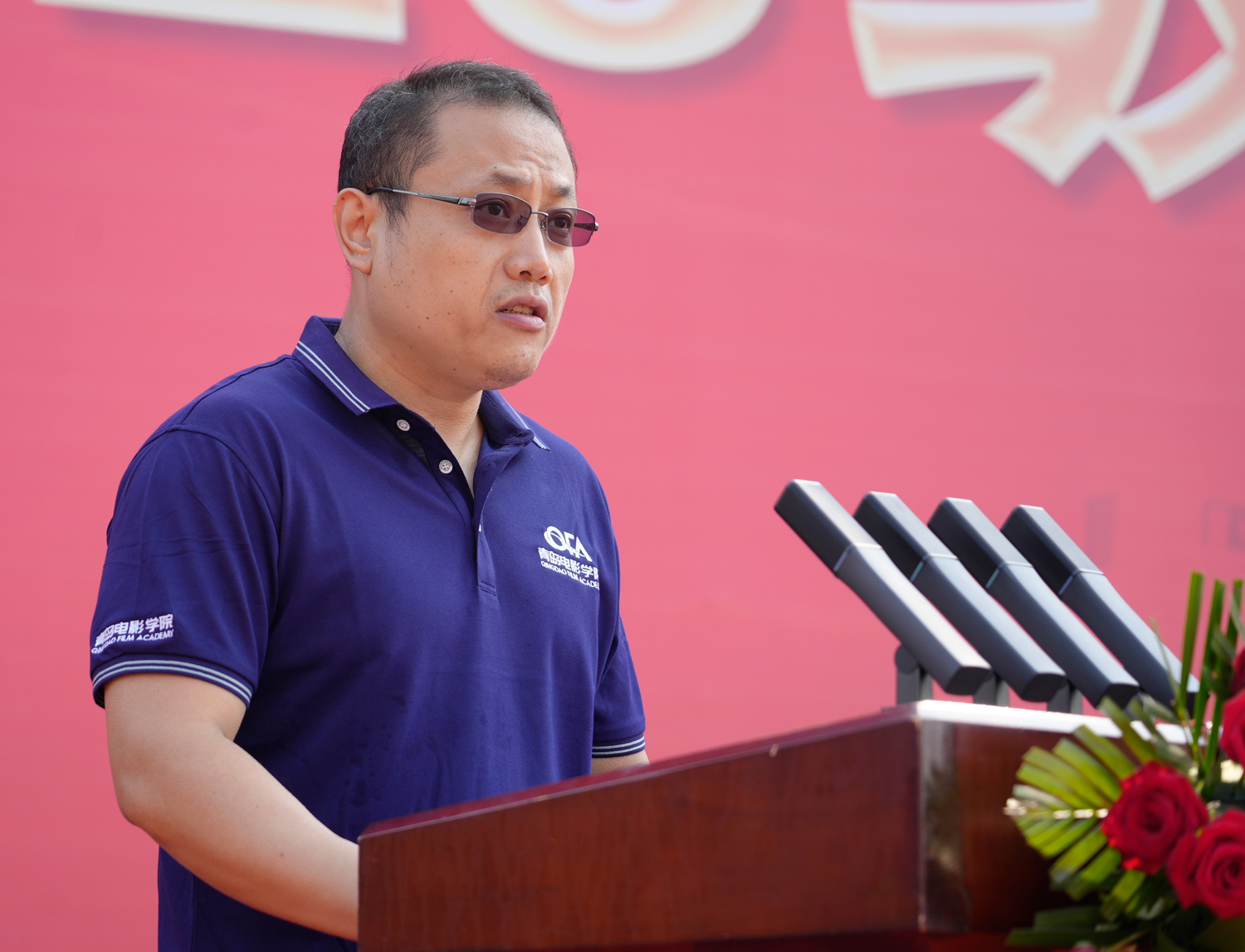 导演系剧情片教研室负责人张悦老师作为教师代表向新一届踏入电影艺术圣殿的莘莘学子表示祝贺。他在发言中勉励新生要心怀家国、志存高远,要脚踏实地、辛勤耕耘,要热爱艺术、崇尚真理,把个人理想融入民族复兴的百年浪潮,用青春书写无愧于时代、无愧于历史的华美篇章!