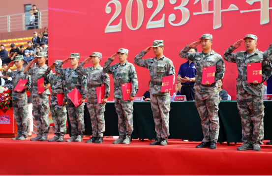 主席台领导为2023年军训优秀连队和优秀标兵颁发了荣誉证书。