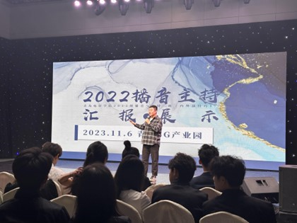 日前,文学系2022级播音与主持艺术专业二班全体同学在焦尊老师的带领下前往青岛东方影都—青岛5G产业园进行《播音主持内外部技巧》的汇报展示。