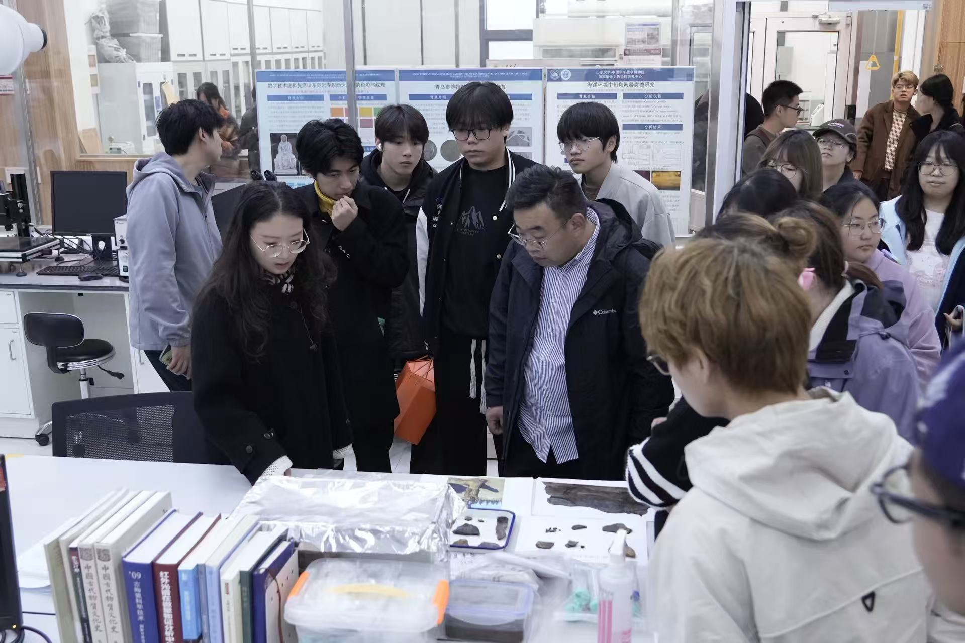 文物保护与修复专业师生首先参观了山东大学考古学院实验室集群。科研人员系统展示了扫描电子显微镜、拉曼光谱仪、超景深显微镜等大型分析检测设备的应用场景,通过黄河下游地区的早期马匹牵引项目、四川邛窑唐代青瓷项目等典型案例,生动阐释了科技考古技术如何实现文物成分溯源、病害机理诊断及修复材料筛选。学生现场就“科技检测与手工修复精度匹配”“传统材料与新型加固技术兼容性”等问题积极提问,科研人员结合实际案例逐一解答,形成良好互动氛围。