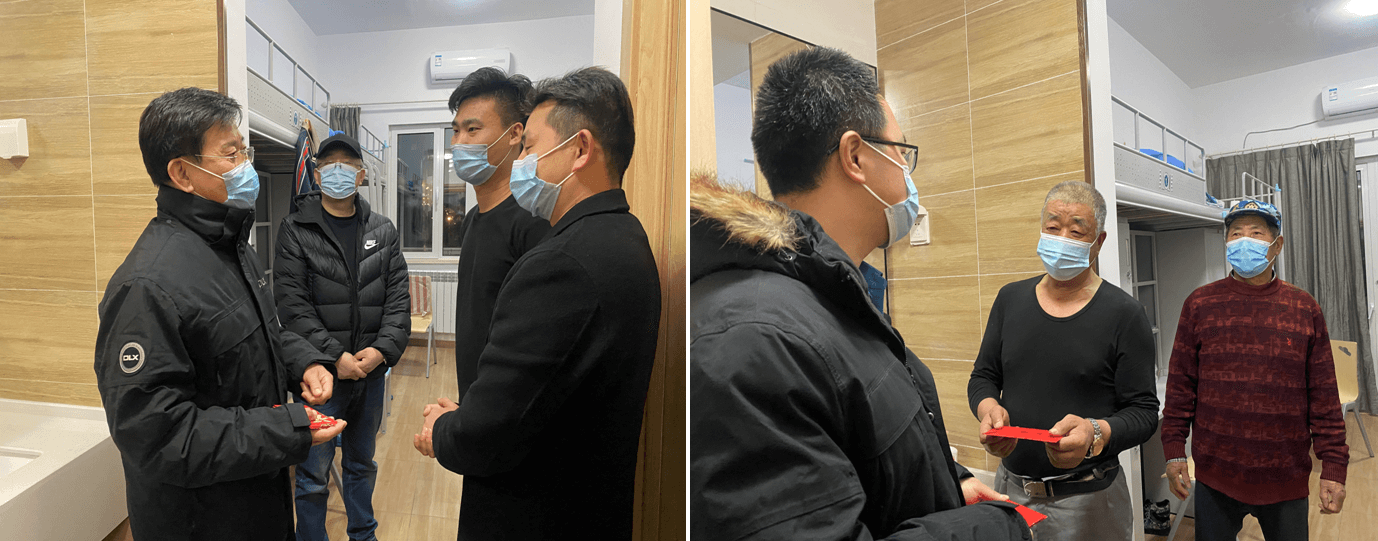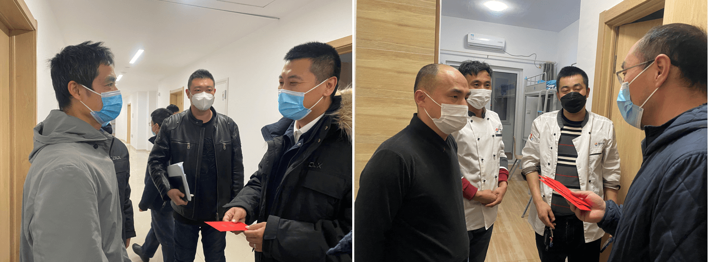 校领导与后勤员工亲切交谈,为驻守在校的人员送出驻校补贴金。苏校长指出,食品健康关系到师生的身体健康和校园生活的平稳有序,并对后勤工作人员在疫情防控期间的无私奉献和舍小家顾大家的工作态度表示充分肯定,希望大家做好自我防护,众志成城,筑牢疫情防控安全屏障。